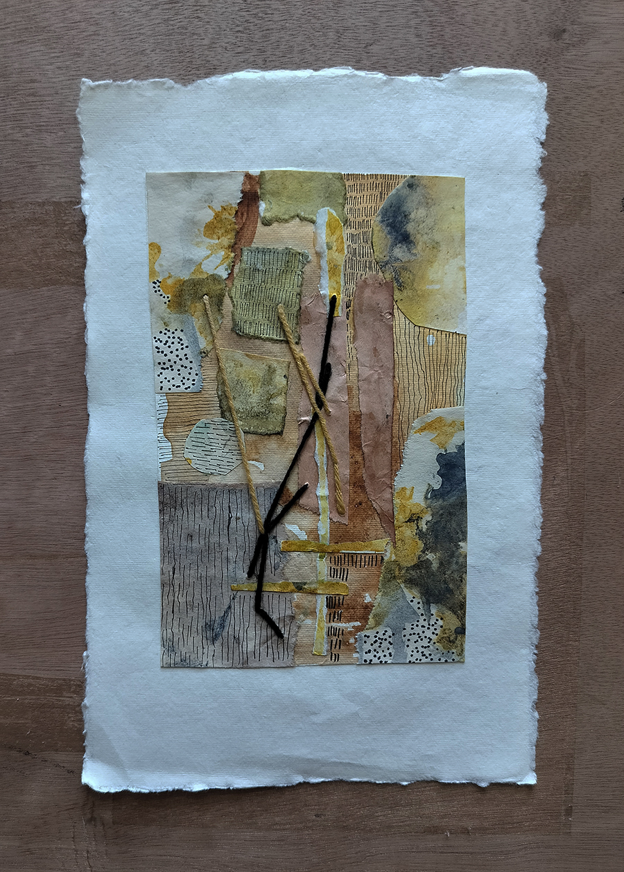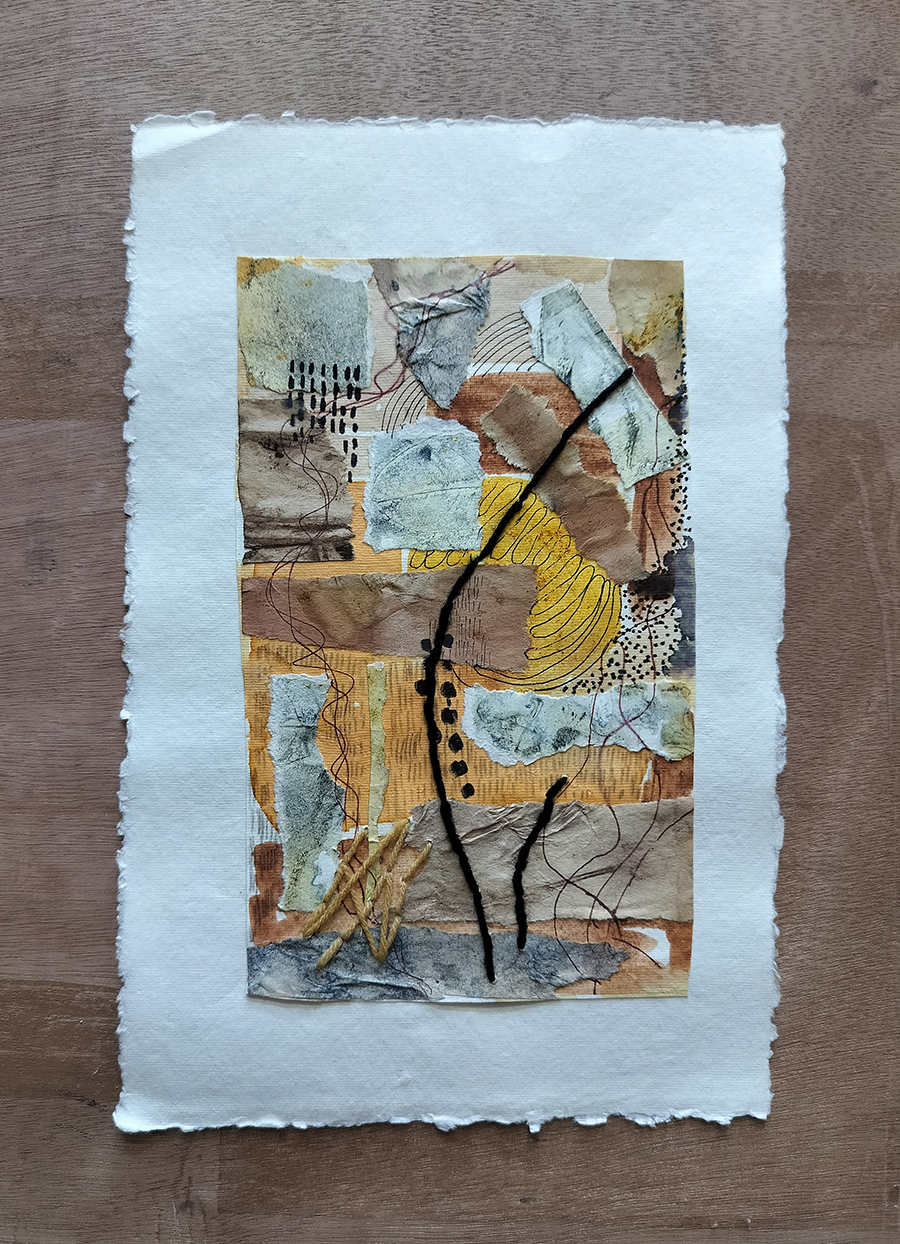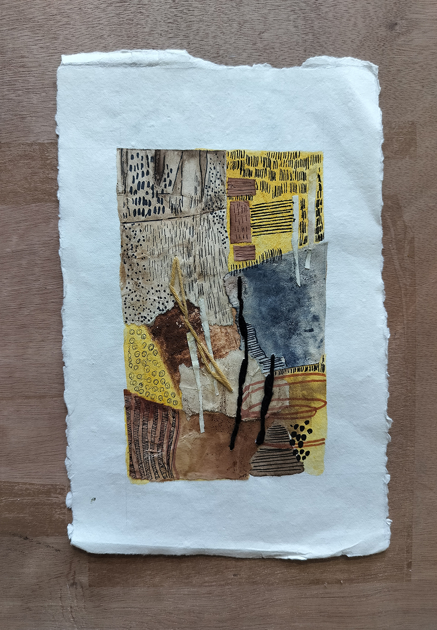 “Unrooting” is a deeply personal series, tracing my reconnection with nature amidst modern chaos. Using organic colors, embroidery, and gentle twists, I explore shedding artificial layers. Each canvas invites viewers to flow with life’s raw, simple essence and quiet beauty. It’s a celebration of sustainability, weaving together the rhythms of the natural world.