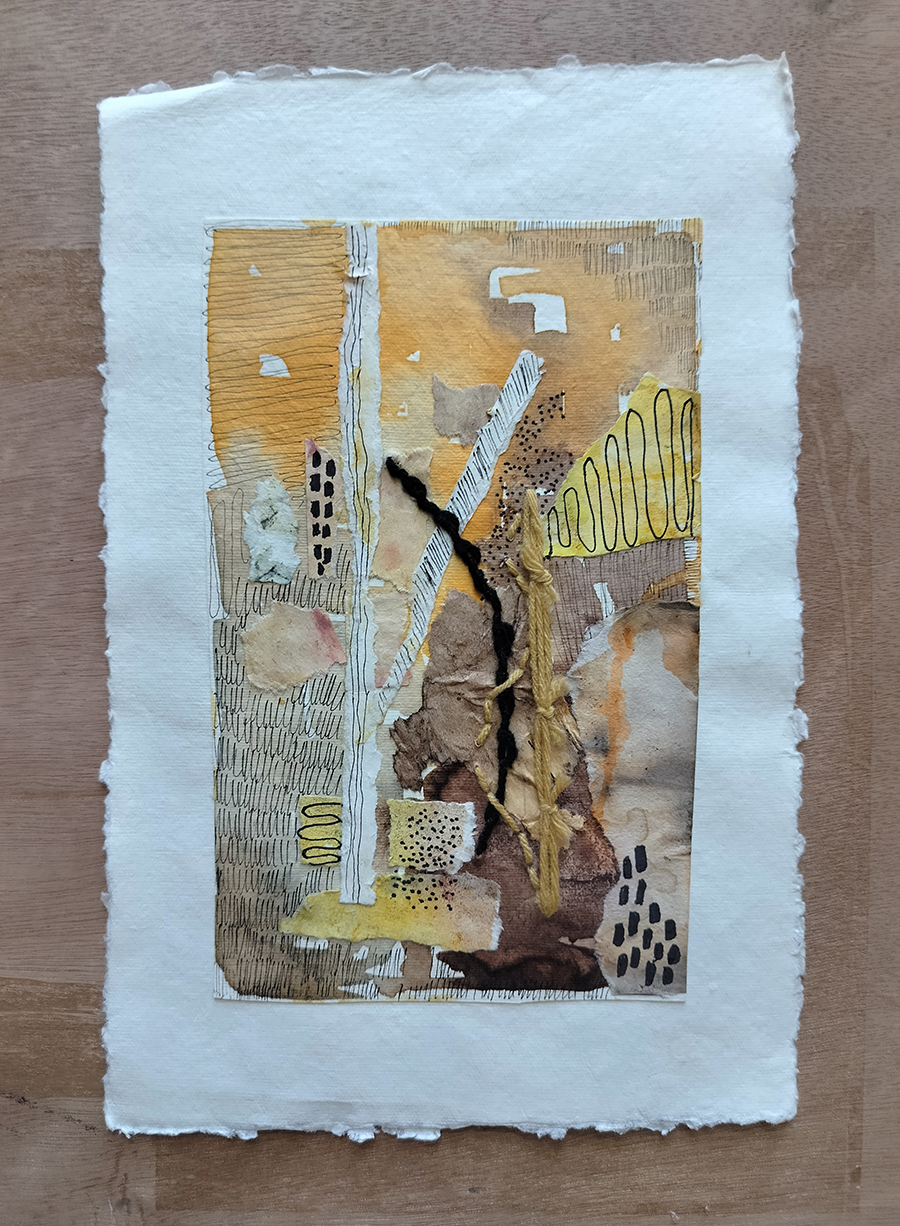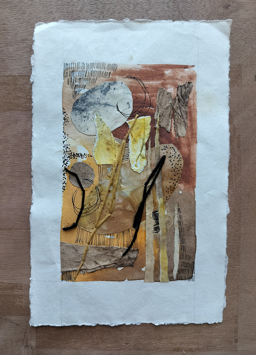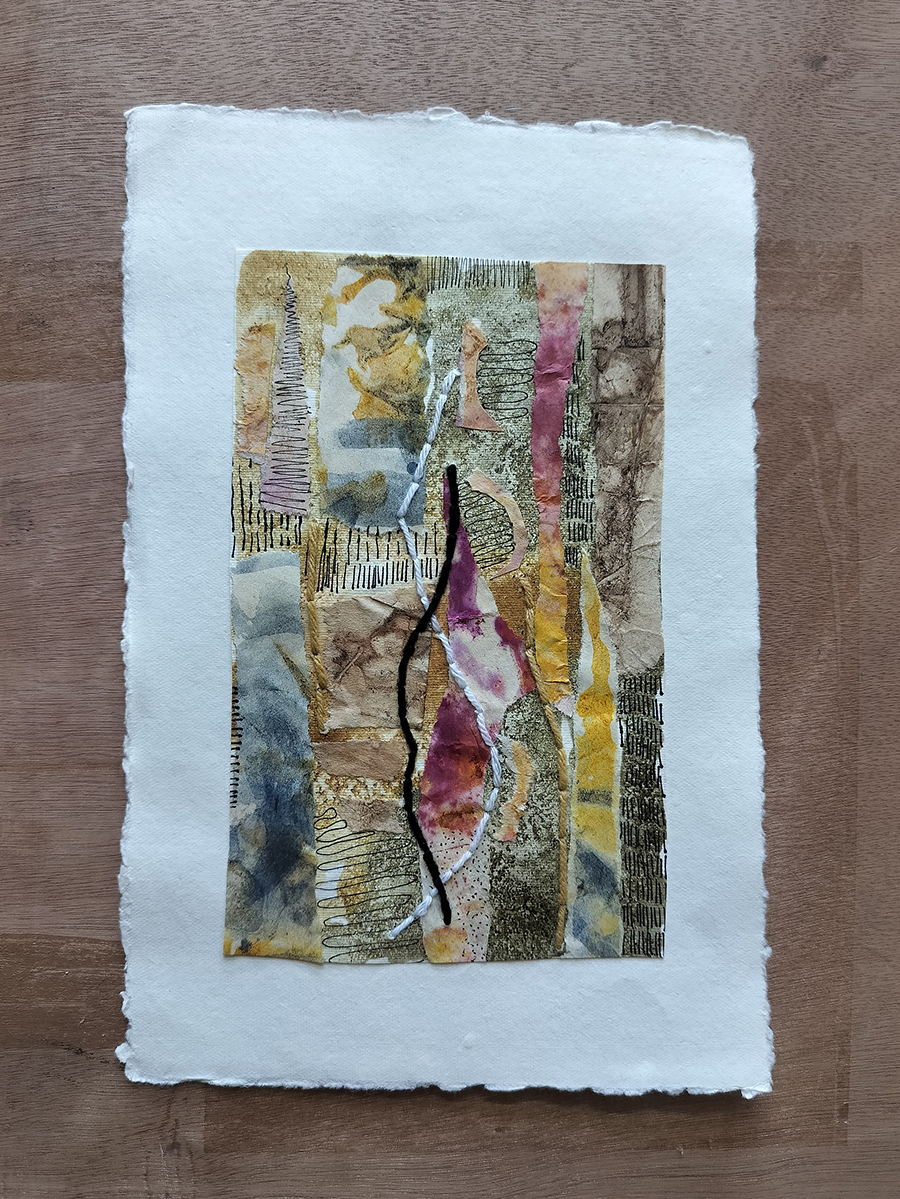 “Unrooting” is a deeply personal series, tracing my reconnection with nature amidst modern chaos. Using organic colors, embroidery, and gentle twists, I explore shedding artificial layers. Each canvas invites viewers to flow with life’s raw, simple essence and quiet beauty. It’s a celebration of sustainability, weaving together the rhythms of the natural world.